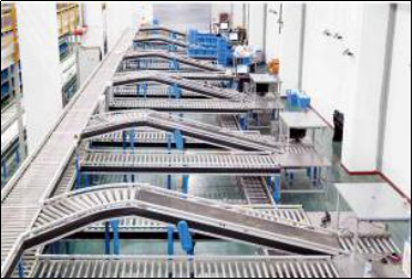 自動化、智能化的輸送分揀系統貫穿出入庫、上架、補貨、復核、分揀全部倉儲流程,輸送效率1200件/時,分揀效率1800件/時。